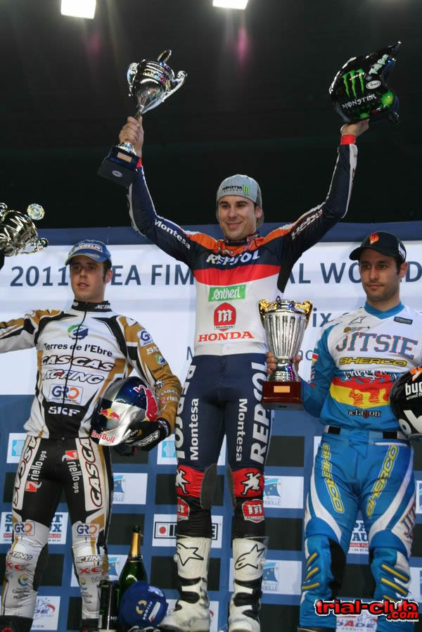 Le premier tour de qualification éliminait James Dabill et Loris Gubian qui étrennait les zones, ce qui représente bien sur un sacré handicap. Loris a fait bonne figure puisqu’il bat James Dabill mais n’a pas pu faire mieux que Mickael Brown qui lui se qualifie . Pour sa première sortie sur la nouvelle Ossa Jéroni Fajardo a alterné le très bon et le mauvais et n’arrivera pas a se qualifier pour la finale. Idem pour Takahisa Fujjinami qui se mettra une énorme boite sur la zone de vitesse, choc sur la tête et malheureusement pour un Fujigaz complètement sonné. Les trois meilleurs pilotes indoor se partagent la finale, mais on sent le vainqueur de l’année dernière ( Albert Cabestany) très nerveux , Adam lui aussi fait de grosses erreurs sur un tracé il est vrai très très sélectif. Toni Bou en personne fera des échecs bien inhabituels. Si la victoire se dessine assez vite pour Toni qui termine en beauté en étant le seul a sortir la dernière zone , la bataille pour la seconde place sera elle serrée, mais Adam aura raison d’Albert Cabestany.