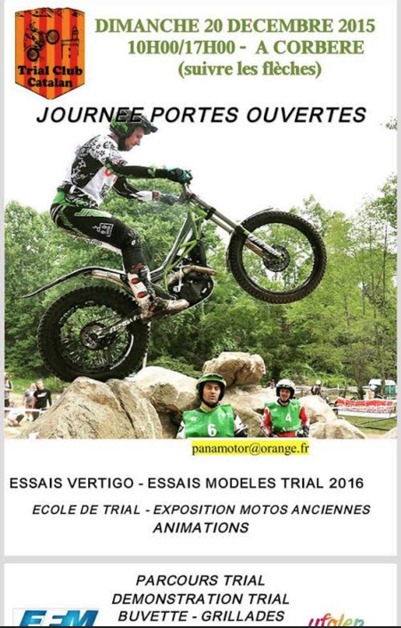 Le trial club Catalan propose Dimanche 20 décembre une journée "Portes ouvertes" avec l'essai de la gamme trial 2016. Essai ( entre autres) de la nouvelle Vertigo "Combat"