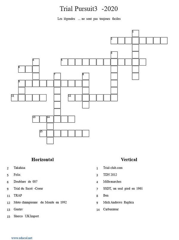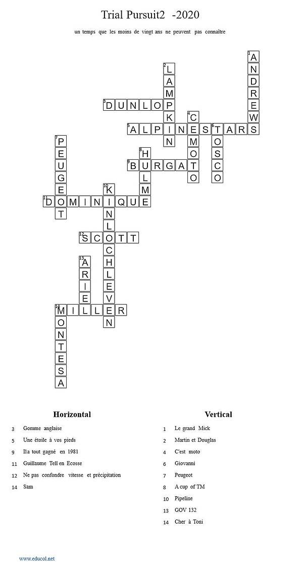 On vous donne la solution du mot croisé numéro 2 et on publie le troisième toujours élaboré par l'ami Walter Wermuth