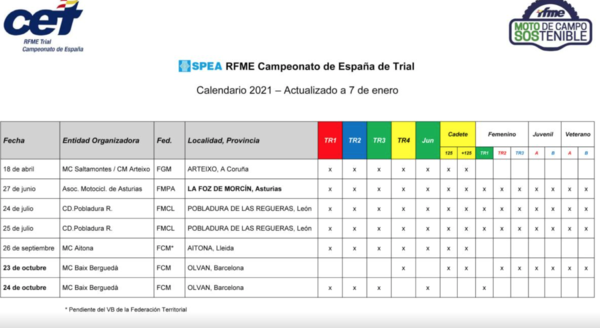 Pour tous les fans du trial Espagnol, voilà le calendrier 2021, en espérant que la "bête" nous laisse tranquille