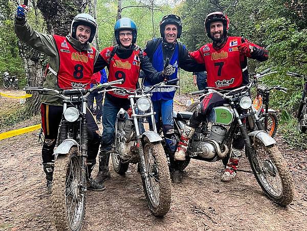 Ils se sont bien amusés Alexandre Ferrer , Méderic Delannoy et Pascal Couturier sur les zones du Ventoux Trial Classic . Ils faut dire qu'ils s'étaient lancé un sacré défi celui de participer à l'épreuve reine du trial Français Vintage avec des motos Françaises des années 50. Trois motos préparées par le sorcier de Pellegrue alias Didier Choquet. Si Pascal Couturier est un as de la spécialité et courrait sur une 250 Motobecane très affutée,Médéric avait hérité d'une Terrot à la cylindrée bien insuffisante (180cc) au vu des difficultés de la catégorie rouge ( la plus élevée). Quand à Alex Ferrer il courrait sur une Renée Gillet de 250 cc mais asthmatique . Les spectateurs ont tous été bluffé par leur performance face a des motos beaucoup plus performantes et ont été encouragés chaudement . Premiers après la première journée , des problèmes mécaniques vont les pénaliser sur la deuxième , ils finissent tout de même second !