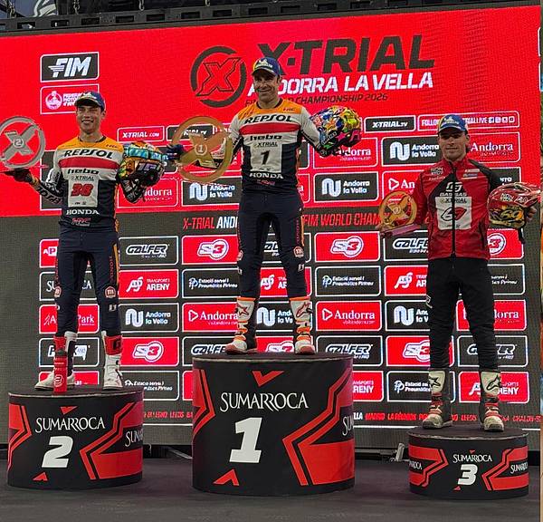 Si la manche d'ouverture du championnat du Monde X Trial 2025/2026 ce samedi en Andorre n'a pas accouché d'une surprise quant au gagnant de l'épreuve , la bataille a été relevée pour les autres places sur le podium. La grosse surprise est venue du niveau de pilotage du jeune champion du Monde Trial 2 , le Britannique Harry Hemingway a la lutte jusqu'à la fin avec Jaime Busto pour la 3ème place derrière Gabriel Marcelli.