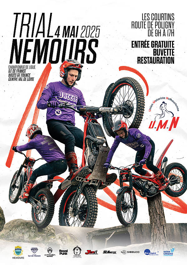 A l'occasion du pont du 1er mai, venez découvrir le terrain qui a accueilli la seconde manche du Championnat de France en 2019 ! Le Trial de Nemours (77) a lieu le 4 mai 2025, soit dans moins de 15 jours et comptera pour 3 ligues différentes ! Déjà près de 120 pilotes inscrits et attention les places sont limitées à 140 maximum ! Situé idéalement au sud de Paris, à la limite des régions du Centre et de la Bourgogne, l'accès au terrain est à seulement quelques pas de la sortie d'autoroute.