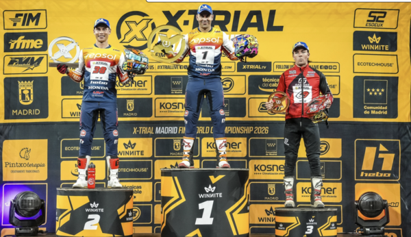 Toni Bou (Repsol Honda Trial Team) a signé une victoire nette et sans appel lors de la deuxième manche du Championnat du Monde FIM de X-Trial 2026 à Madrid, concluant la finale avec seulement deux points de pénalité après avoir déjà dominé la Q1.