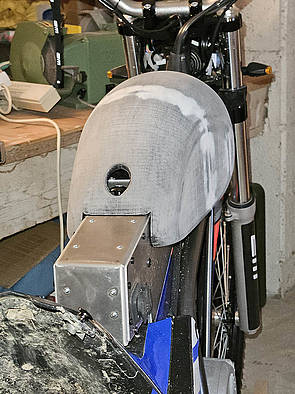 Toutes les autres pièces d'accastillage sont également réalisés en impression 3D dans divers matériaux adapté a leur usage : Casquette de phare, collier caoutchoucs pour montage souple du phare, interface des garde-boue AV et AR, support de selle et plaque d'immatriculation avec clignotant intégrés.