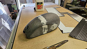 Le réservoir creux (puisqu'il vient masquer la partie supérieure de la batterie) est en impression 3D ASA avec peinture aluminium patinée. Les caches latéraux sont également fabriqués selon le même procédé.