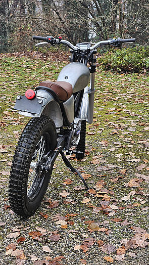 Seuls les garde boue boue ( Montesa), le phare avant (Peugeot 103 la selle (Honda Monkey retravaillée et affinée) et les clignotants achetés sont des pièces achetées dans le commerce.
