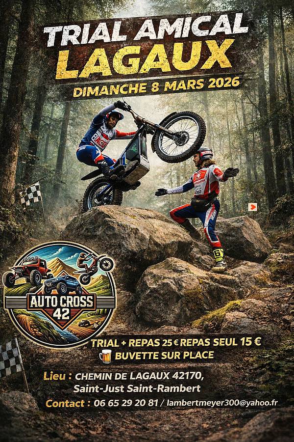 Réservez votre dimanche 8 mars pour participer au trial amical de Lagaux. L'équipe a bien bossé et a sorti les grands moyens pour vous proposer un beau trial
