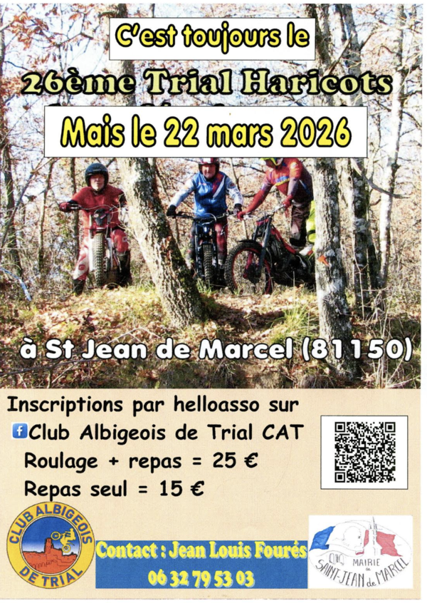 Le Club Albigeois de Trial organise comme tous les ans son « Trial haricots » sur son terrain de St Jean de Marcel (81).