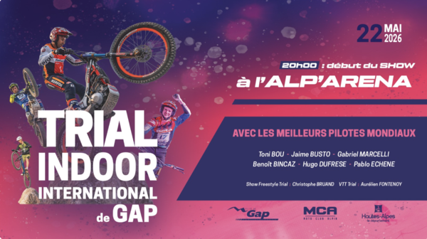 Le vendredi 22 mai 2026, l’Alp’Arena accueillera les plus grandes stars du trial mondial réunies pour un show d’anthologie !