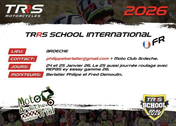 Gros week end dans le sud de l'Ardèche ou se déplace la TRRS School avec comme professeur Philippe Berlatier et Fred Demoulin . Cette journée n'est pas réservée aux seuls stagiaires ce sera aussi un week end de roulage pour tous et vous pourrez essayer la gamme TRRS.