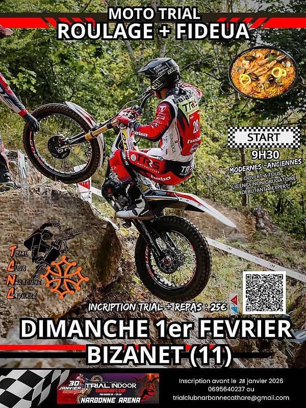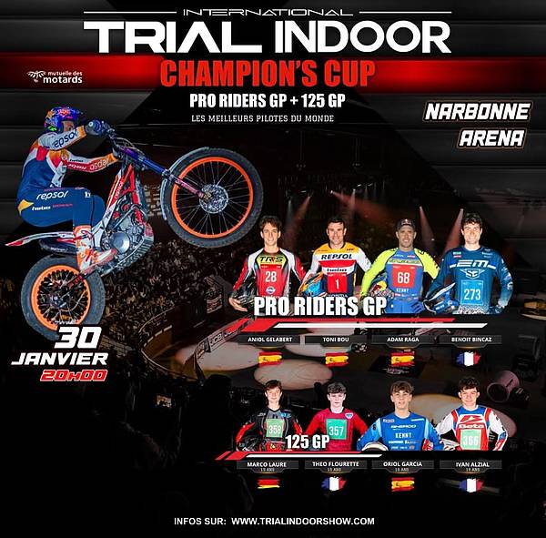 Le week-end sera entièrement dédié à notre discipline. Le samedi, les jeunes du Mondial 125 rouleront avec Benoît Bincaz, journée offerte par l’organisation Trial indoor show de Julien PERRET, sur le secteur de Narbonne.