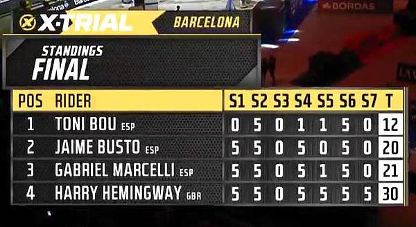 Le champion du monde de X-Trial ne laisse aucune chance à ses rivaux au Palau Sant Jordi, tandis que Busto devance Marcelli d?un seul point dans la lutte pour la deuxième place