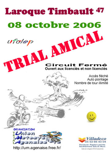 Bonjour. Notre Club, le Trial Club Lourdais organise une compétition UFOLEP Midi-Pyrénées, Aquitaine le dimanche 29 octobre à Lourdes en circuit fermé et comptant pour le challenge 2006.