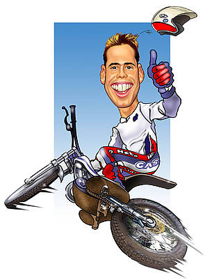 1 La Ville de Ulldecona conjointement avec Adam Raga organise un concours de caricature sympathique à l’image d’Adam Raga avec sa moto de trial pour utiliser sur des autocollants et autres supports publicitaires