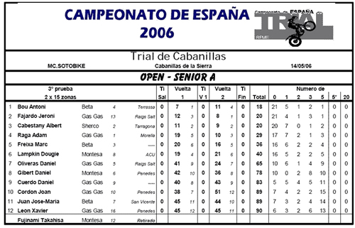Pour en revenir au championnat d'Espagne, c'est Toni Bou qui prend la tête du classement général devant Adam Raga et Jéroni Fajardo. Albert Cabestany monte cette fois sur le podium. Doug Lampkin termine 6ème derrière un Marc Freixa qui commence a prendre en main sa Béta.