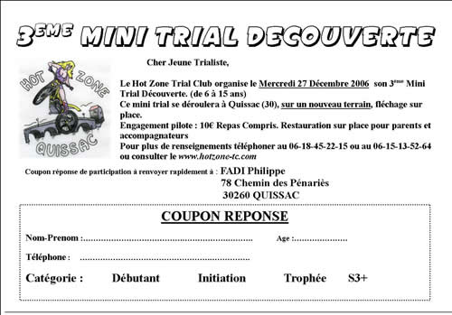 Un trial réservé aux jeunes pendant les vacances de Noël,ça c'est une bonne idée, c'est a Quissac (30)