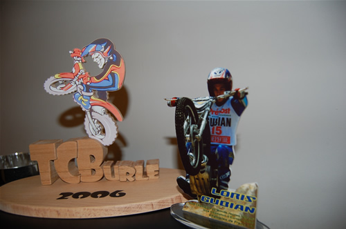 Un peu marre des trophées habituels ? une bonne idée pour les clubs qui ont envie de sortir des traditionnelles coupes ,le trophée en bois personnalisé, il est l’œuvre de la Société « création » à 07250 Rompon (tel 04 75 62 02 31).Le trial club de la Burle l’a remis a tous ses pilotes qui ont fait un podium sur le championnat de ligue Dauphiné Savoie 2006