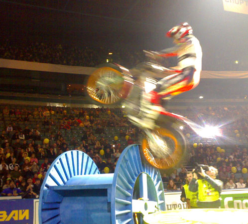 A voir , Albert Cabestany qui rentre avec la moto sous le bras suite à la casse d'une vis en titane et qui l'obligera à l'abandon .