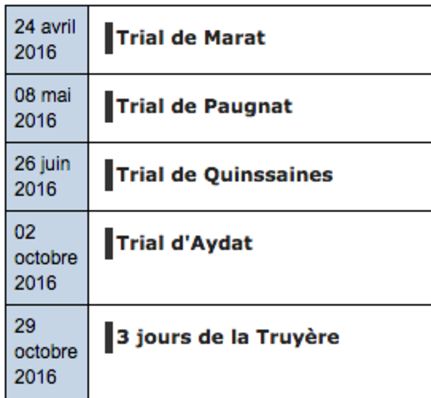 Trialistes de la ligue Auvergne et alentours , à vos agendas , voilà le calendrier 2016 de la ligue Auvergne