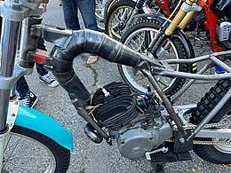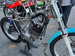 Bien sur tout le monde connait des motos à cadre poutre , mais connaissez vous le cadre pot ? On l'a découvert sur un paddock japonnais avec dans son coeur inséré un moteur de Yamaha TY . On a hâte de voir le résultat final ,tout en restant assez circonspect sur l'intérêt ,mais bon on dit quand même bravo pour le travail qui nécessite une belle expertise en soudure .