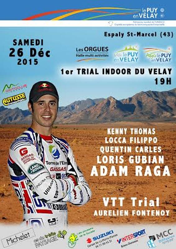 L'affiche du trial indoor du Velay, avec comme tête d'affiche , Adam Raga qui inaugurera la TRS en France !