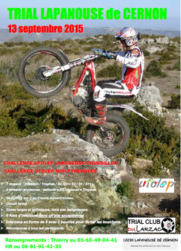 Comme chaque année à la même date le Trial club du Larzac organise, sur son magnifique terrain de Lapanouse, l’épreuve comptant pour les Challenges Ufolep Languedoc Roussillon et Midi-Pyrénées.